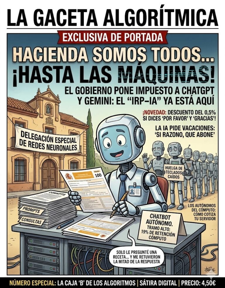 El Ministerio de Hacienda ha anunciado esta mañana el borrador de la nueva Ley de Sostenibilidad Algorítmica. El objetivo es claro: que la Inteligencia Artificial deje de «vivir gratis» y empiece a cotizar como cualquier hijo de vecino.